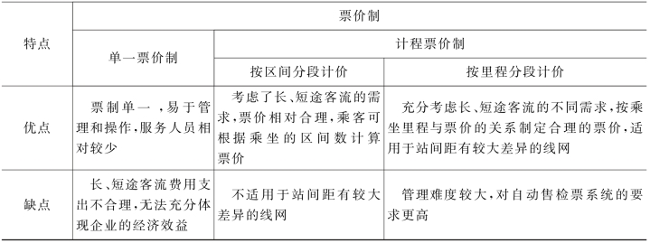 ①单一票价制。单一票价制是指不论乘客乘坐里程长短或站点数多少都实行一种价格的票价制度。