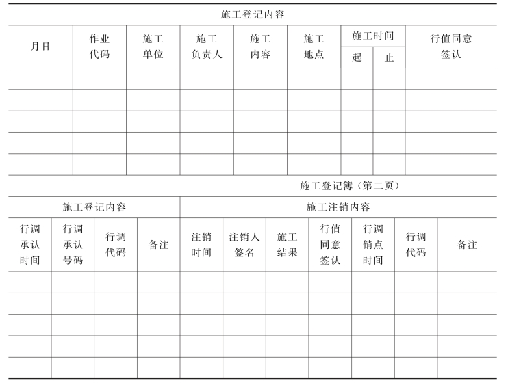 表6-6 车站施工登记簿施工登记簿(第一页)