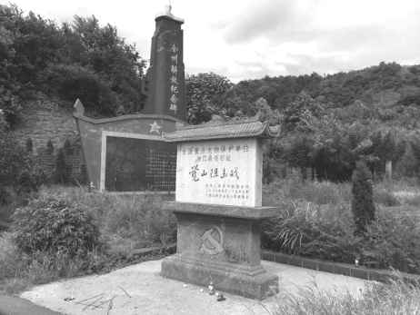 桂黄公路旁的脚山(觉山)铺阻击战纪念碑