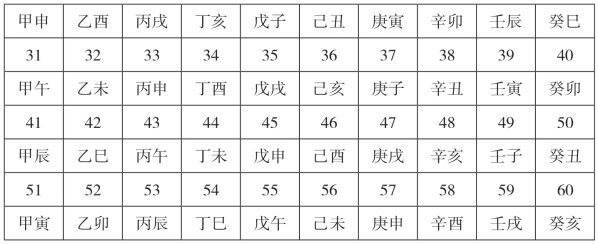 中华民族五千年历史,灿烂的华夏文明源远流长,早在史前原始社会的新石器时代,中国大陆的先民就发明了表示次序的符号——天干和记录时间的符号——地支。由于实践应用和生活、生产的需要,人们又把天干与地支组合成为干支并循环使用,用以表示年、月、日、时的次序。每六十年为一个周期,称为一个“甲子”。下一个轮回又从新的甲子开始从头排列,即六十年后,又进行新的循环。如表1、表2: