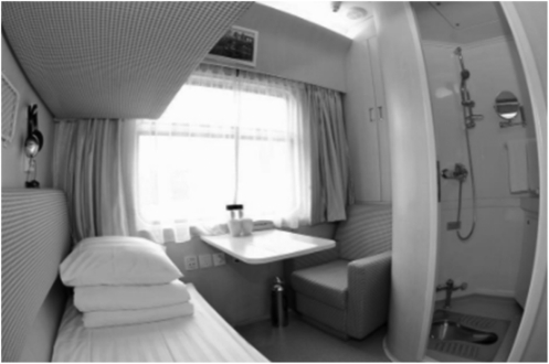 Sleeper Berth(soft sleeper,luxury soft sleeper),used for CRH series EMU trains.Found on only a few“D”trains running overnight between Shanghai—Beijing or Beijing—Shenzhen.Similar as a soft sleeper on conventional trains but are limited to 4 berths to a compartment.Some upper berths can fold away to permit running purely as seated passengers.