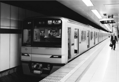 东京是亚洲最早有地铁的城市,早在1927年12月就开通了银座至浅草寺路段。据2018年12月8日东京地铁官网显示,东京地铁共开通13条线路,包括东京地下铁9条路线,都营地铁4条路线,线路总长312.6千米,共计290座车站投入运营(换乘站不重复计算)。东京地铁分为两种:一种是帝都高速交通财团运营的地铁,即营团地铁,有9条线路;另一种是东京都交通局运营的地铁,即都营地铁,有4条线路。东京地铁车站如图1-7所示。