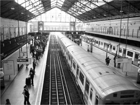 伦敦地铁于1856年开始修建,1863年1月10日正式投入运营,是世界上第一条地下铁道。伦敦现有12条地铁线路,地铁站列车间隔时间,高峰时市中心为2分钟,其他地区为5~6分钟;平时市中心为5~6分钟,其他地区为10~12分钟;平均每天运送乘客220万人次,年客运量达8亿多人次。换乘方便是伦敦公共交通的特点。每条地铁线路基本可与其他10条线路交叉。伦敦有5个机场,均与地铁或快速直达列车及长途汽车相连。地铁与铁路也有46个交叉站,在6区之内,买一张日票就可在地铁、火车站通用。乘客下火车或下飞机后即可换乘地铁。有的地铁还连着旅馆的后门,从旅馆出门可以搭乘地铁。口袋版的地铁线路图在每个地铁站都可以取到。伦敦地铁车站如图1-1所示。