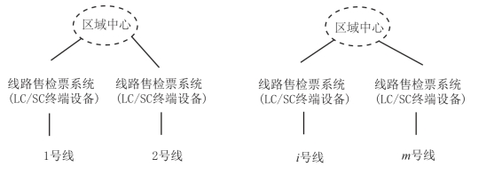 轨道交通网络由若干个区域构成,每个区域由若干条线路组成,但各个区域相互独立,完成本区域线路的票务处理和运营管理,构成分散式架构,其基本形式如图2-4所示。