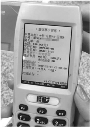 便携式验票机(Portable Card Analyzer,简称PCA)是一种移动设备,供车站管理人员对乘客所使用的车票进行检票和验票的设备,可读取城市轨道交通专用车票和储值票的数据。该设备可在不同的车站和不同的区域之间移动操作。其由车站工作人员随身携带,用来对乘客所持公共交通卡和单程票进行查询,可显示相关的交易信息,如票种、票值、历史数据、有效期、无效原因和应收票价等,方便车站工作人员在收费区内对有关票卡的有效性进行检验,分析车票并显示检验结果。便携式验票机能通过显示器显示车票的检票情况和查询结果,并且方便乘客识别检票操作是否成功,为及时解决票务纠纷提供帮助。便携式检票机见图3-12。