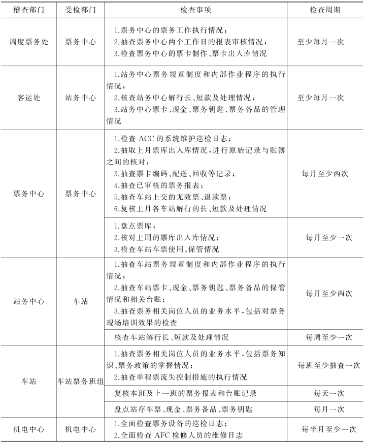 票务相关处室应严格遵守票务规章制度和内部作业程序,形成自查、互查的工作机制,加强票务工作的日常检查,安全监察处定期检查相关记录。