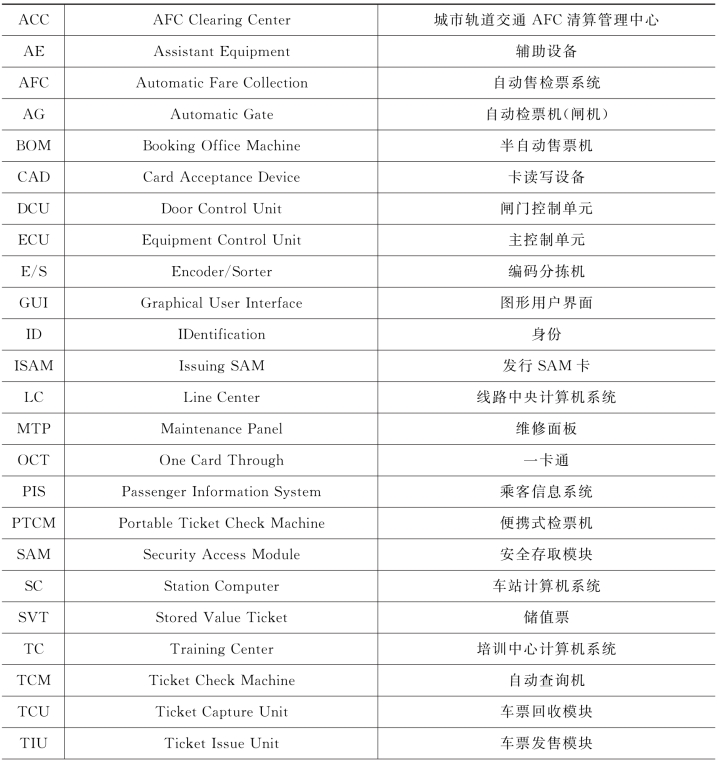 附录一 AFC常用缩略语英汉对照表