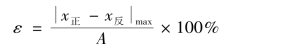 在使用条件不变的情况下,在仪表量程范围内,使用同一仪表对被测量进行正反行程测量时,所有测量点上产生的最大差值与仪表量程之比值称为变差,用ε表示。