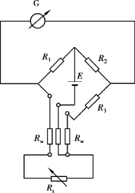 使用电桥作测量仪表时,工业用铂电阻的引出线是三线制以减小连接导线电阻因环境温度变化所引起的测量误差,如图2.36、图2.37所示。
