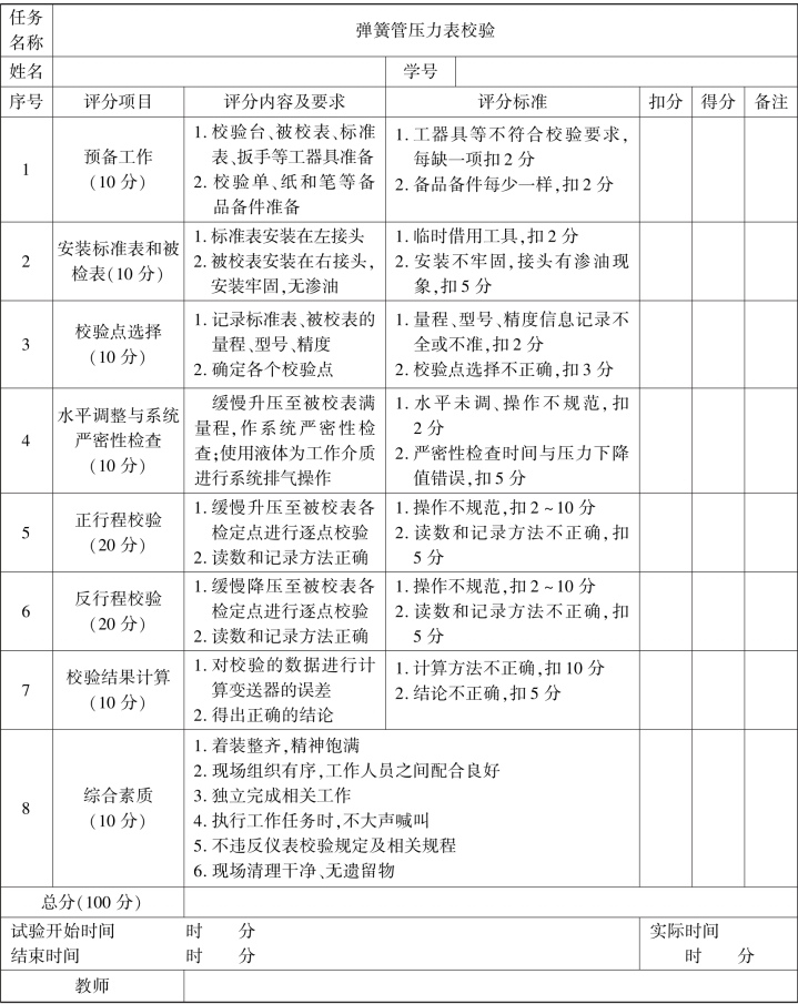 ②确定校验点:对于1.0,1.5,2.0,2.5精确度等级的压力表,可在5个刻度点上进行校验。对于0.5级和更高精确度等级的压力表,应取全刻度标尺上均匀分布的10个刻度点进行校验。