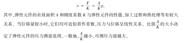 弹性元件受压力作用后通过受压面表现为力的作用,假设被测压力为px,力为F,其大小为