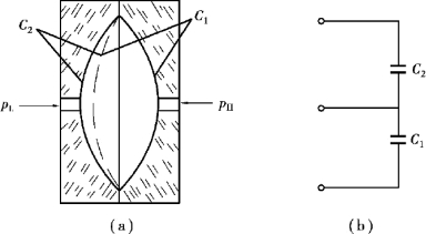 电容式传感器是目前应用非常广泛的一种压力/差压测量传感器。其工作原理如图3.4所示。电容式传感器采用全密封电容感测元件δ室,直接感受压力。被测压力作用在两侧的隔离膜片上,并通过充满δ室的硅油将压力均匀地传给中心测量膜片,中心测量膜片是一个张紧的弹性元件,该膜片作为差动式电容的动极板,定极板是在绝缘体的球形凹表面上镀一层金属薄膜而成的。当被测压差发生变化、中心测量膜片产生变形位移时,位移量与差压成正比,此位移转变为电容极板上形成的差动电容,并由其两侧的电容固定极板检测出来。