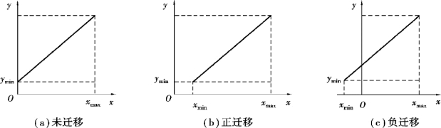 图3.6为变送器零点迁移前后的输入输出特性。由图可知,零点迁移后变送器的输入-输出特性沿x坐标向右或向左平移一段距离,其斜率并没有改变,即变送器的量程不变。若采用零点迁移,再辅以量程压缩,可以提高仪表的测量精确度和灵敏度。