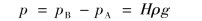 式中 pA——容器中A点的静压,也即液面上方气体的压力;当被测对象为敞口容器时,则pA为大气压力;