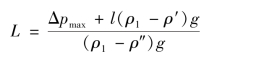 考虑平衡容器输出差压最大值应和差压传感器测量上限值一致,即在水位最低(ΔH=-H0)和汽包额定工作压力时,平衡容器输出的最大差压等于差压传感器的测量上限Δpmax,可推导出L为