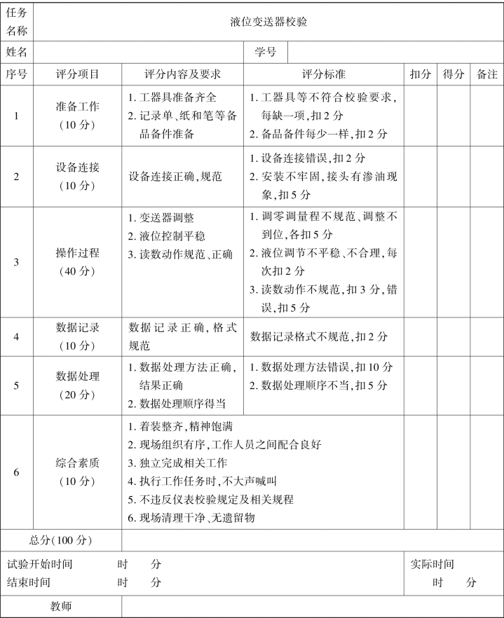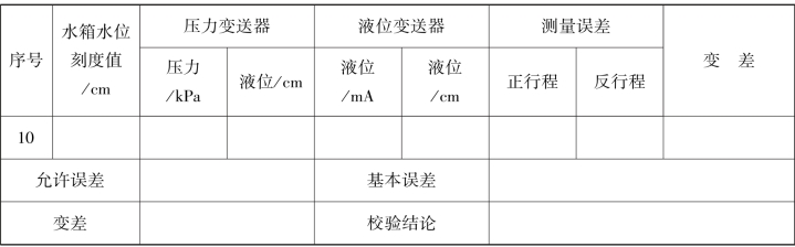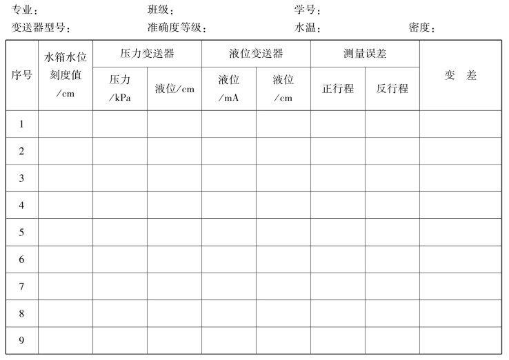 ⑥改变水箱液位的高度,从每次改变10 cm水柱,分别记录压力传感器的数值和液位传感器的数值,记录液体的温度。