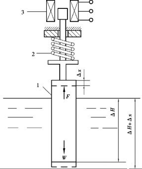 当浮筒所受浮力与弹簧力和它的重力平衡时,浮筒停止移动。这时,浮筒移动的距离,就是弹簧的位移变化量。