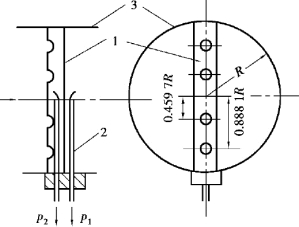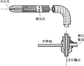 如图5.5所示,皮托管是一根双层结构的弯成直角的金属小管,在其头部迎流方向开有一总压孔,在总压孔下游某处开有若干个静压孔。