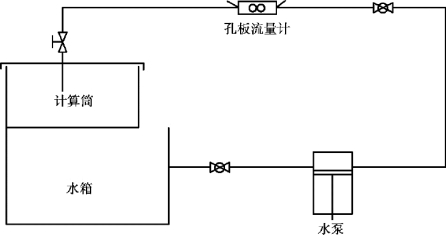 实验装置如图5.7所示,主要由循环水泵、孔板流量计、U形压差计、温度计和水槽等组成,实验主管路为3.33 cm不锈钢管(内径25 mm)。