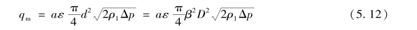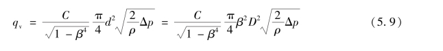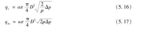 式(5.10)仅适用于不可压缩流体。对可压缩流体,流体的密度变化是不可忽视的。但是,为了方便起见,可采用和不可压缩流体相同的流量公式和流量系数a或流出系数C,而把全部的流体可压缩性影响用一流束膨胀系数ε来考虑,同时引入节流件前的流体密度ρ1。于是,可得体积流量公式为