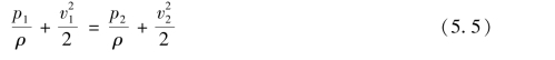 设流经水平管道的流体为不可压缩性流体(ρ1=ρ2=ρ),并忽略流动阻力损失,对截面1和截面2写出下列伯努利方程: