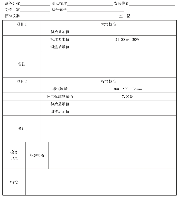 ⑤通气约1 min后,调节变送器面板上的“标气校准”电位器,将氧量显示值调为标准气体氧量值即可。