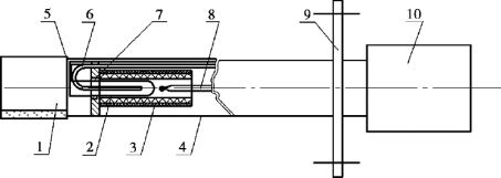 1—过滤器;2—氧化锆元件;3—加热炉;4—外壳;5—信号引线;6—标气管;7—元件法兰;8—K形热电偶;9—法兰;10—接线盒