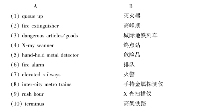 Two students work together to match each word or expression in column A with each Chinese meaning in column B and link them with straight line.