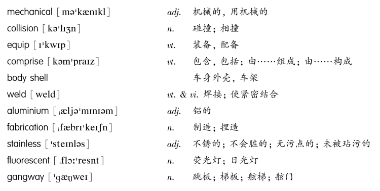 车架采用焊接铝型材为原材料,地板面采用防火的不锈钢制成。
