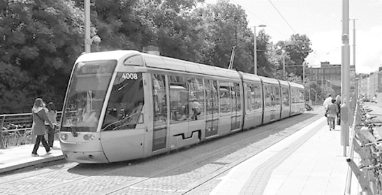 Light rail systems can handle steeper inclines than heavy rail,and curves sharp enough to fit within street intersections.They are generally built in urban areas,providing frequent service with small,light trains or single cars.