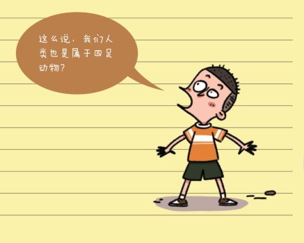 四足动物是动物界最高等的类群,最早出现在距今大约3.7亿~3.5亿年前的晚泥盆纪。四足动物都有脊椎骨,也都有盆骨连接在脊椎上,用来支撑体重,同样都有胸廓,用来保护心脏和肺;四足动物通过鼻孔呼吸空气,其四肢的顶端都由一根骨头组成,下面则都有一对骨头伸向手或脚,并均具手指或脚趾。