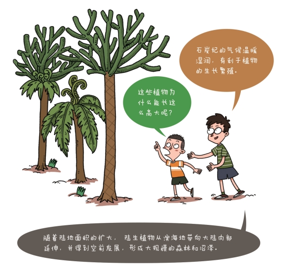 石炭纪是植物世界大繁盛的代表时期,由于这一时期形成的地层中含有丰富的煤炭,因而得名“石炭纪”。