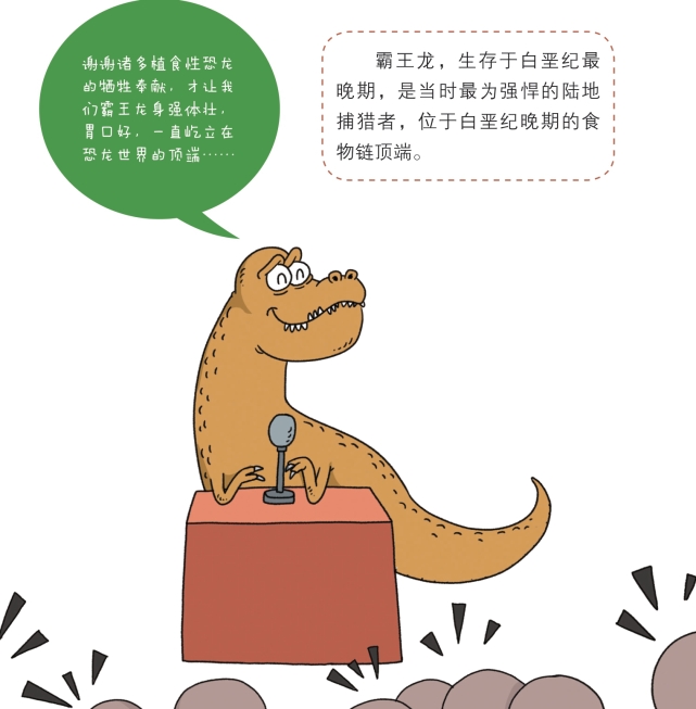 而且,当时其他大部分恐龙都可以成为霸王龙的捕猎对象,有时它们也会攻击像阿拉莫龙这样的长颈食草恐龙,每天要吃掉几十上百吨的食物。