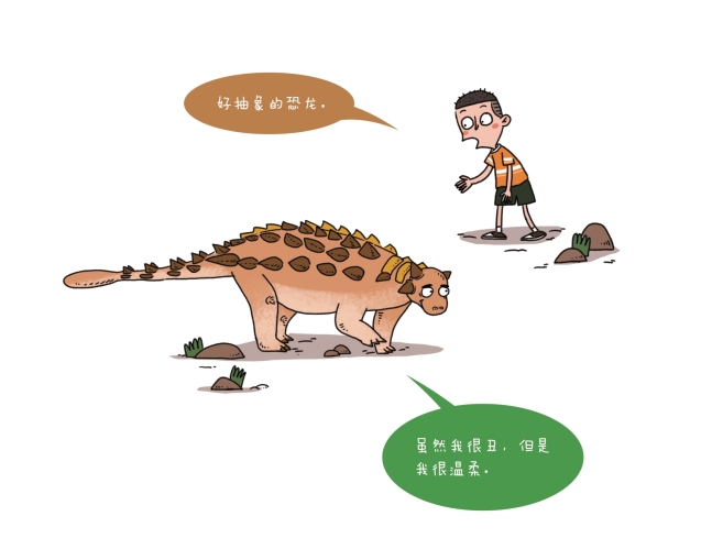 甲龙,别看它披盔戴甲,看上去凶巴巴,其实它是温顺的植食性恐龙。