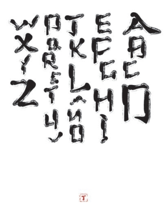 作业说明:姜维维的字体设计海报《融》的设计创意出发点是对在设计界广泛讨论的“民族的就是世界的”传统话题的探究。将中国传统水墨视觉感融入到英文拉丁字母的书写中,是将中西方文化的融合,是将水墨视觉感和拉丁文书写随意感的融合。设计的重点和难点是怎样在拉丁文的视觉感觉中融入东方书法视觉感。字体海报《融》将这两种视觉感觉完美融合。