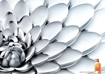 产品广告,又称商品广告。是以促进产品的销售为目的,通过向目标受众介绍有关商品信息,突出商品的特性,以引起目标受众和潜在消费者的关注。力求产生直接和即时的广告效果,在他们的心目中留下美好的产品形象,从而为提高产品的市场占有率,最终实现企业的目标埋下伏笔。例如图2-7,这款洗洁精广告通过对勺子的强力洗净作用的体现,同时配以优美的构图,成功引起消费者注意,达到诉求目的。