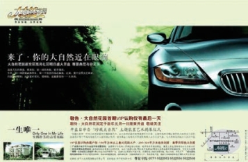 例如图2-29的楼盘广告广告语既有祈使的手法,又可以称为保证式的标题。“来了,你的大自然近在眼前”,将大自然的美好事物和楼盘相结合,受众很容易接受。