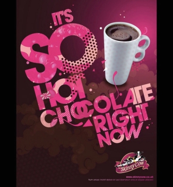 另外,广告构成因素中也存在文字的明亮对比。文字的明度对比,一方面可利用文字的明度差来实现,但必须配合字体的风格对比和大小对比;另一方面,文字的明度对比还可以通过文字排列的疏密来实现。例如图2-36的巧克力饮品广告,通过文字大小的对比制造出一种空间感,使画面富有层次和现代感。