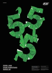 文字在广告设计中占有重要的地位,相对于图形来讲是广告信息传递最直接的方式。而图形则是象征的、间接的广告信息传达方式。我们可以见到完全以文字来构成的广告,而从未见到过只以图形来完成的广告。例如图2-31是宽带公司的广告,用缠绕在一起的三个“5”组成图形,字体的造型很好地表现电线环绕的主题。
