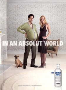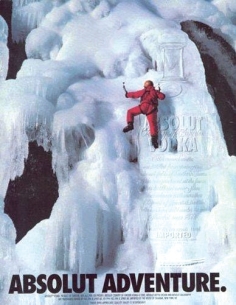 通过对产品的外观或性质做适当的夸张表现,以此引人注目。同时能更加鲜明地强调产品的特点及给消费者带来的收益。例如图2-48是伏特加酒的广告,就是通过对男士“啤酒肚”外形的夸张,成功引起消费者的注意。图2-49是酒广告,通过对巨型冰山酒瓶外形的夸张,引起消费者的注意。