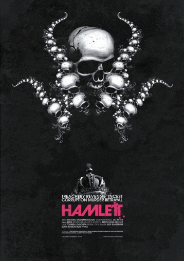 广告版面中的图形要素,主要包括商标和插图两大类。商标是商品形象的直接传达,也是商品注册的依据,是商品一诞生就有的。广告插图是广告设计最重要的图形要素,对于加速广告信息的传播起着非常重要的作用。广告插图不能单纯注重画面的艺术美,更重要的是要树立商品形象,传达商品信息,讲究广告效应,促进商品销售。例如图2-38哈姆雷特戏剧海报的插图是由骷髅组合的图案,准确表达戏剧的悲剧情怀。