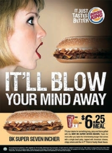 以写实的手段表现产品的真实面貌或使用产品时的真实情节,让读者获得真实的感受,引起他们心理上的共鸣,促使他们采取购买行动。例如图2-47汉堡王的广告是通过吃汉堡的食客的真实动作引起消费者的共鸣,刺激购买。