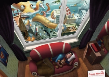 用轻松、幽默或拟人化的手法把形象做卡通式的有趣夸张。这种幽默、滑稽的表现形式能增加亲切感,使读者产生阅读兴趣,吸引他们观看广告画面。例如图2-45、图2-46是品牌玻璃的广告。插图为卡通插图,用轻松、幽默的画风传达出玻璃隔音效果超好这种特征,成功吸引大众的目光。