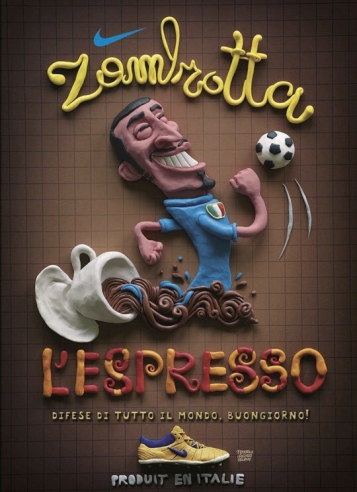 随着现代计算机技术的发展,汉字字体的变化趋于多样化,除较常用的黑体、宋体外,还有准圆、书宋、空心、立体、琥珀、行草等。虽然可供选择的字体很多,但在同一版面上,使用几种字体尚需精心设计和考虑。一般来讲,同一版面上使用的字体种类越少,越容易设计,也最易流于一般。字体用得少、用得恰到好处,往往会形成高雅的格调。字体种类用得多,会给人热闹、快乐、活泼的印象。例如图2-75的耐克运动鞋广告,利用卡通立体字体营造整个画面轻松、幽默、活泼的氛围,字体成功烘托了主题。