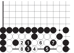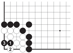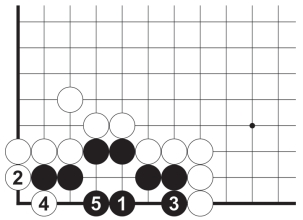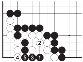 如图4,角上的黑棋需要做活,黑1尖是正确手段,白2拐,黑3做眼,白4扳的时候,黑5可以做出3目。做活的时候,要做到尽可能扩大自己的目数。