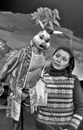 卢萍:我在上海木偶剧团一直以演小男孩角色为主。当时我们排了一部为了纪念抗战的木偶剧《鸡鸣山》,我在里面演的是一个地主家的男孩。导演把角色分配好以后说,你们都自己回去看剧本。自己看剧本能看出什么来呢?我心里很没底。当时我是住在剧团宿舍里的,有老师也是住宿舍的,我就问了老师有关剧本的问题。老师说这就是案头工作,你先看两遍,然后把自己代入角色后再去看本子。于是我边看本子,边进入角色。