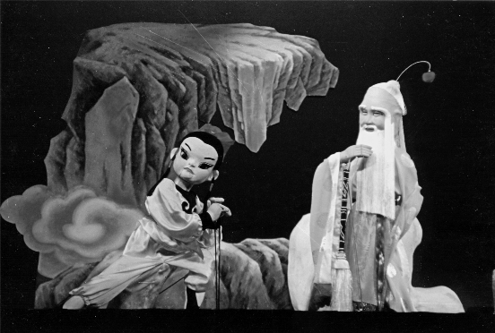 这个戏当年排演以后,请了中央工作组过来。上海是“文化大革命”重灾区,中央派了以苏振华为团长、彭冲为副团长的工作组来上海主持工作。我记得是1977年春节以前,大概是2月18日,请他们来审查。审查完了以后,没有明确表态,结果需要请示中央。我们等他们定通知,中央答曰:“内部公演。”内部公演的票是非常紧张的,四张舞剧《小刀会》的票换一张木偶票,很多人在门口排队。全国很多木偶界的剧院、剧团都在下面看戏,画的画、录音的录音,其实我看见了,他们也不跟我打招呼,不好意思嘛。所以这个戏后来陆陆续续就在全国各地演出了,那是公认的黄金时期。“文革”后,还没有完全放开的时候,传统戏不让演,也不敢演,“才子佳人”的题材更加不敢演。我可以说,全国第一个敢搞这个传统神话剧的,就是我们上海木偶剧团。一直过了很长时间,才允许登报、公开宣传。后来上海恢复政治生活,人大政协会议召开的时候,要请代表看戏的,市政府决定给代表们看的第一个正式节目,就是我们的木偶剧《孙悟空三打白骨精》。当时很多文艺界的代表都来看戏,这是我们比较成功的一个戏。