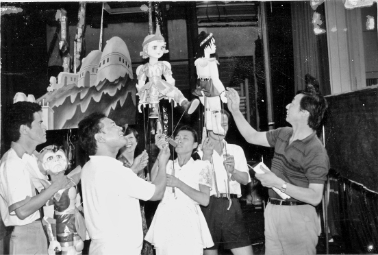 我记得《小八路》之后,排了一台歌颂毛主席的小节目,后来又把《闪闪的红星》改编为木偶剧。中间我搞了一个戏,叫《东海小哨兵》。为什么会搞这个戏呢?那年发生了一件事情,外交部给我们剧团一个任务,巴基斯坦总统齐亚哈克向我方提出,他们国家要成立国家木偶剧院,希望我们能帮助他们培养人才。这个任务转来转去就到上海木偶剧团了,最后就叫我去负责这件事情,担任助教。我把钱时信老师的十套广播操拿出来,再稍微改良了一下,教大家。后面总要排个戏吧?“文革”期间,很多戏没法弄,想来想去,想到了当年有一个《东海小哨兵》给枪毙掉了,文化局领导审查没通过,不许演。后来我就跟文化局打了报告,要求排《东海小哨兵》,他们同意了。然后我就排了这个戏,让学生毕业的时候演这个戏。1979年,第二批巴基斯坦学员又来了,团里还是让我去负责教学工作。他们就来了十个人,所以我带了几个学生一起配合教学。这一批学员毕业回去的时候,排了《孙悟空三打白骨精》,也很成功。毕业典礼在锦江饭店的对面举行,以前叫文化俱乐部,开了200人参加的中外记者招待会,比较隆重。后来到了北京,巴基斯坦大使也请我们聚会表示感谢。现在的巴基斯坦国家木偶剧院的院长,就是由第一届来华进修的学生担任的。从1968年开始,我就主要从事编导工作,中间大大小小搞了有几十个比较成功的木偶作品。