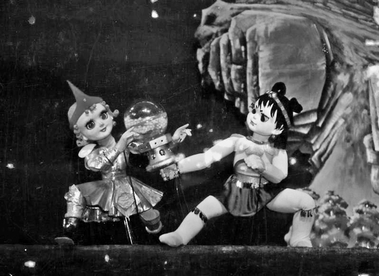 翟羽:《卖火柴的小女孩》实际上用的就是隔离灯光的效果,但是它不是第一台使用隔离灯光的,第一台是《春的畅想》。隔离灯光,通俗地讲,就是灯光照在木偶上是明亮的,演员在后面操作木偶,但是坐在前面的观众是看不见演员的。