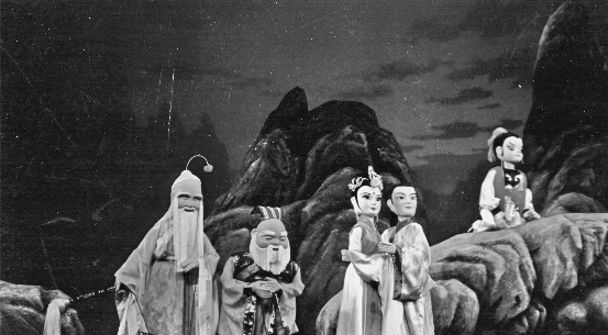 木偶的布光属于舞台灯光的范畴,但由于有一米七的台口,可以在下面非常准确地,或者说可以随心所欲地配光。举个例子,《华山神童》里沉香倒地了以后,他要起来的时候,在台口下面,可以直接在他身体里面布光,之后不断地闪,这样现实的效果就出来了。所以木偶戏的布光特点就是在舞台灯光的范畴里面,有它自己的特殊手段。